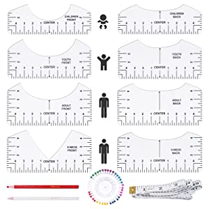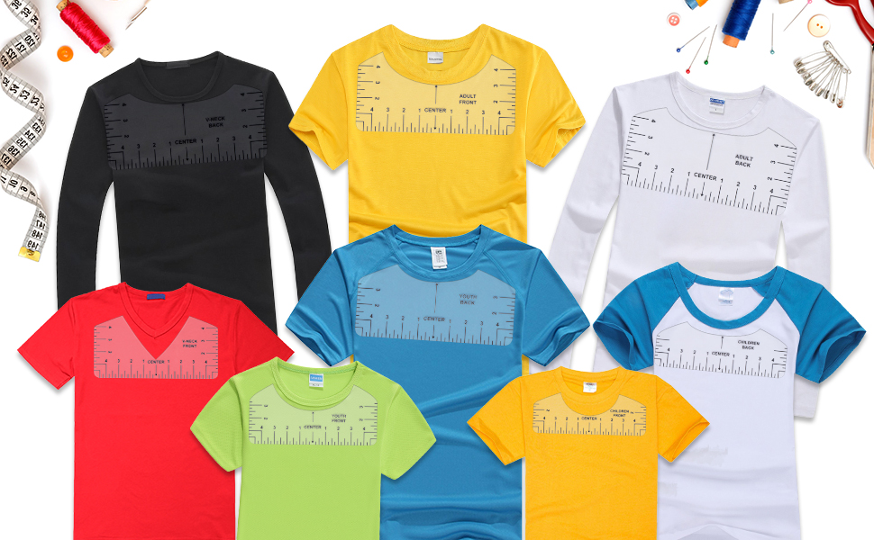 ● 【Back&Front Design of Ruler】the front and back of clothes makes making T-shirts more quicker and easier, And 8pcs rulers convenient for you to center various sizes of Round/V-necks T-shirts, Perfect compliment to your T-shirt business.