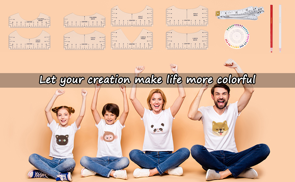 ● 【DIY YOUR T-SHIRT】: You can design clothes for family and friends by yourself with these alignment ruler tools. It's perfect for designing all kinds of T-shirts. It brings you much handmade convenience, save your time and energy, show your love to your family. It's also the perfect gift for beginners and professional tailors.
