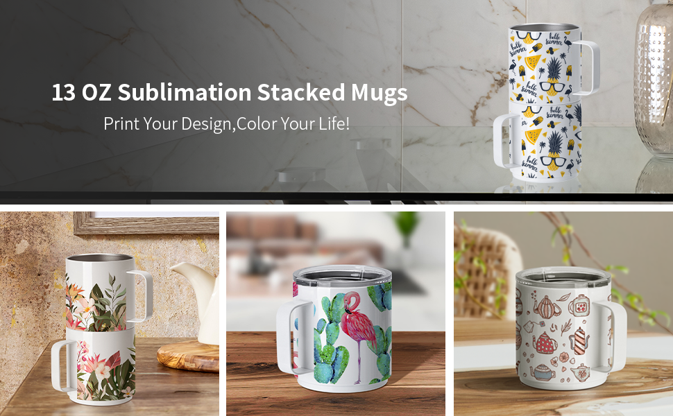 ● With Handle:Our sublimation tumblers cups mugs with handle,which easy to take out.And the metal mug is stacked.