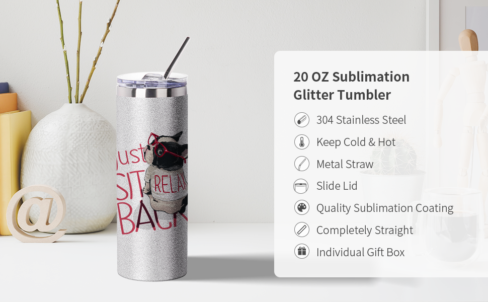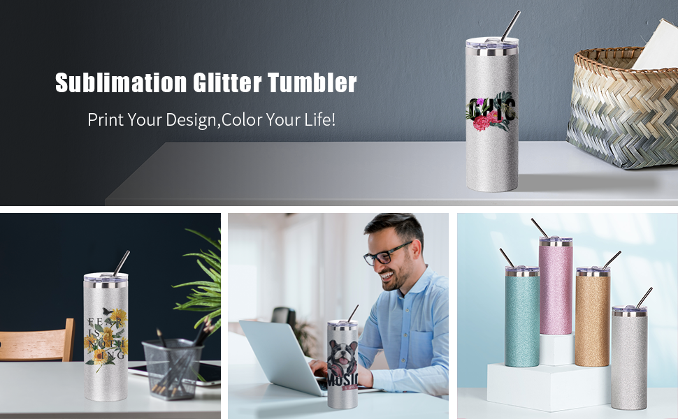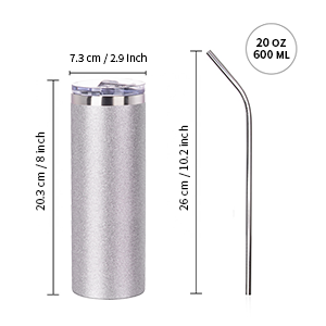 ● Completely Straight:Our sublimation glitter skinny tumbler is completely straight not tapered,which is easy to make the full wrap sublimation print by tumbler heat press machine or sublimation oven.