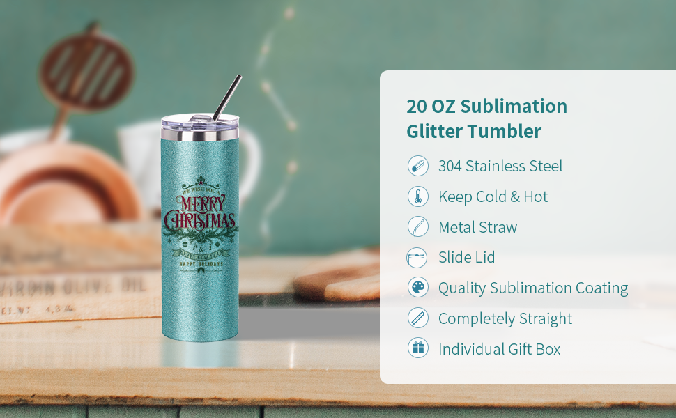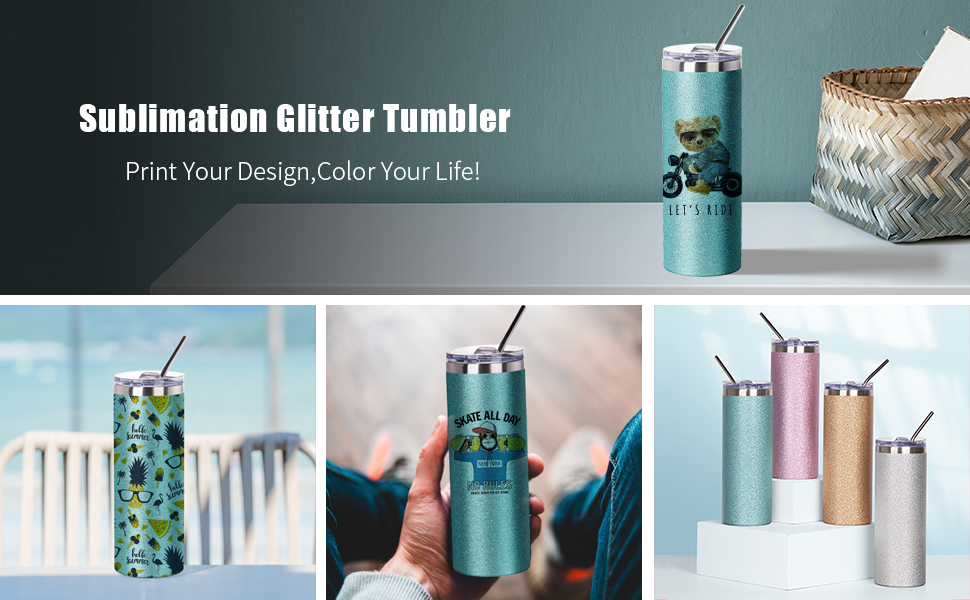 ● Completely Straight:Our sublimation glitter skinny tumbler is completely straight not tapered,which is easy to make the full wrap sublimation print by tumbler heat press machine or sublimation oven.