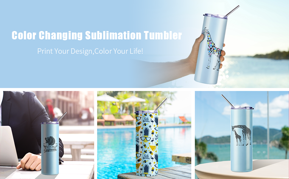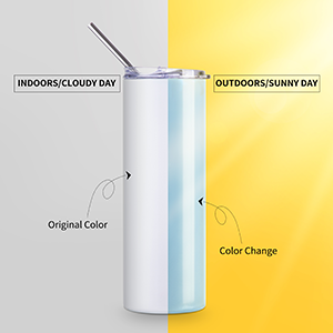 The color changing tumbler,will change from white to blue,when put it under the sunshine.