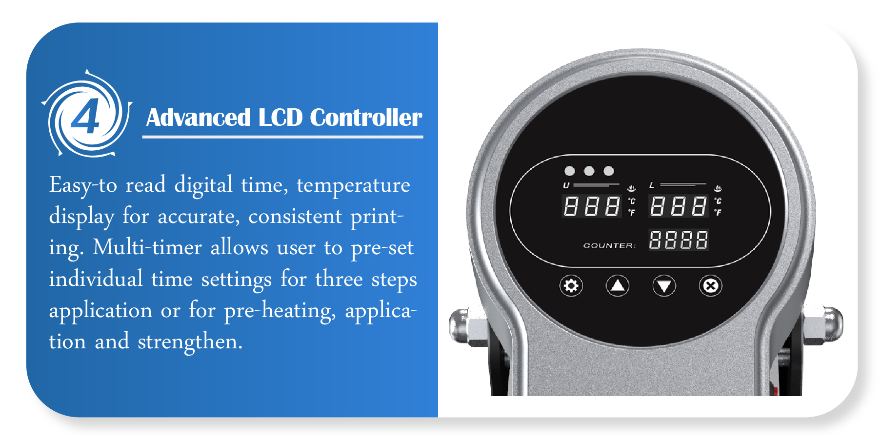 ③ 16 x 20 inch Teflon coated upper heat platen.