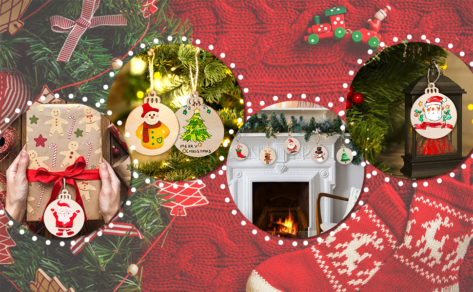 The Wooden circle ornaments unfinished, to add a little imagination, paint, stains or inks, you can create your own personalized decor, instead of the same old Xmas decoration every year.