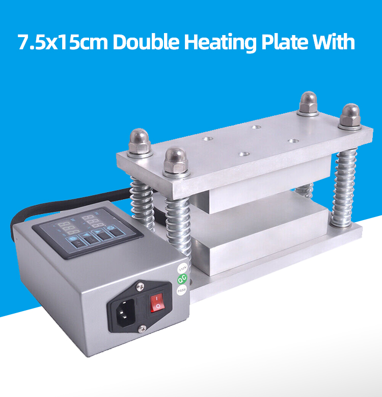 EasyPrsso Rosin Press Plates Kit works with 10 to 20 ton hydraulic or air-operated shop presses (shop press not included) and comes with a compact temperature and timer controller. This product is capable of pressing up to 20 ton pressure at low temperature. The kit features 75 x 150mm aluminum plates, a detachable cord, and magnetic feet on the controller which allow you to secure it anywhere on the press.