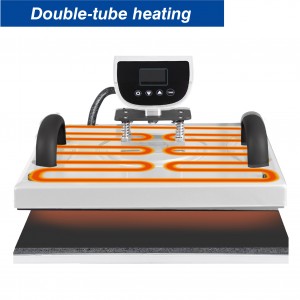 【DUAL-TUBE HEATING】- Unlike ordinary single tube heating, our heat press 15x15 adopts the latest double-tube heating technology. That makes the temperature difference is only about 5 ℃ between the center and the edge. But the old-fashioned heating tube is more than 10 ℃.