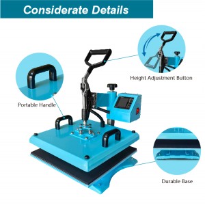 A portable handle can facilitate the movement. The flexible button is easy for adjusting the height. Based on the solid base, the heat press requires stable support to maintain smooth running.