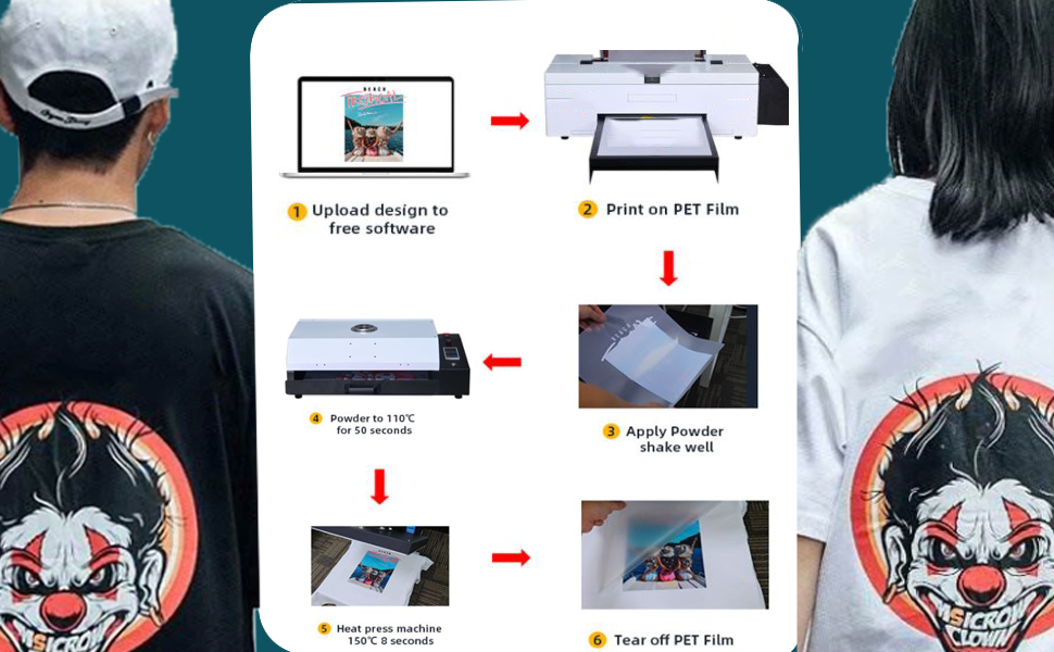 ● Easy to Use: Just place the DTF film in your dtf printer accordingly. Place the coating side up. No need WEEDING, you create, crop, print any size and image you want