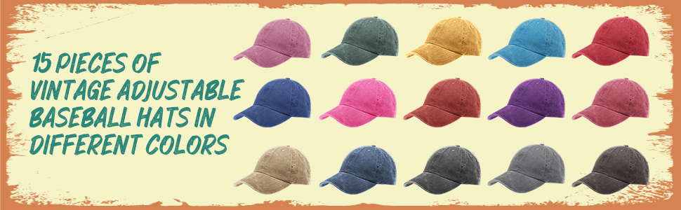 ● What You Get: you will get 15 pieces vintage adjustable baseball hats in 15 different colors, simple vintage washed plain designs, nice for women and men of any age and for any occasion; Solid color is suitable to match many styles of clothes, different colors could match different outfits to bring you different mood