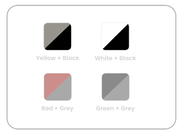 Four colors can be choose: Yellow + Black, White + Black, Red + Grey, Green + Grey.