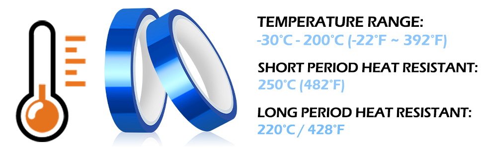 ● 【OUTSTANDING HEAT RESISTANCE】 HTVRONT heat tape is a polyester film tape with high-temperature resistant adhesive, which can withstand temperature from -30°C ~ 200°C (-22°F ~ 392°F). When using our heat resistant tape with your mug press, heat press vinyl and sublimation project, the tape will not melt, become brittle or deteriorate.