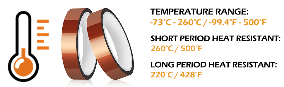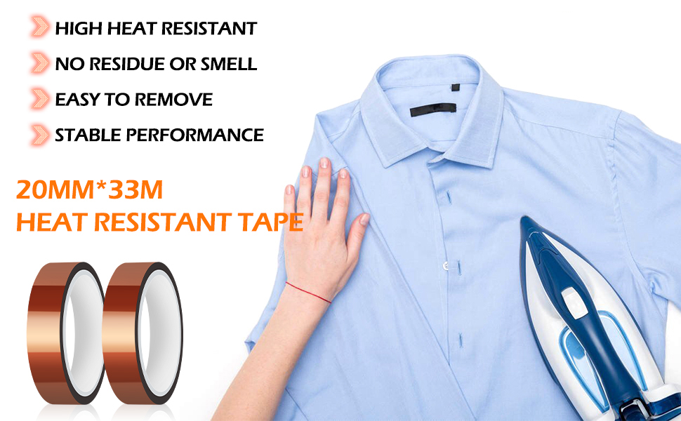 ● 【OUTSTANDING HEAT RESISTANCE】 HTVRONT heat tape is a polyester film tape with high-temperature resistant adhesive, which can withstand temperature from -30°C ~ 200°C (-22°F ~ 392°F). When using our heat resistant tape with your mug press, heat press vinyl and sublimation project, the tape will not melt, become brittle or deteriorate.