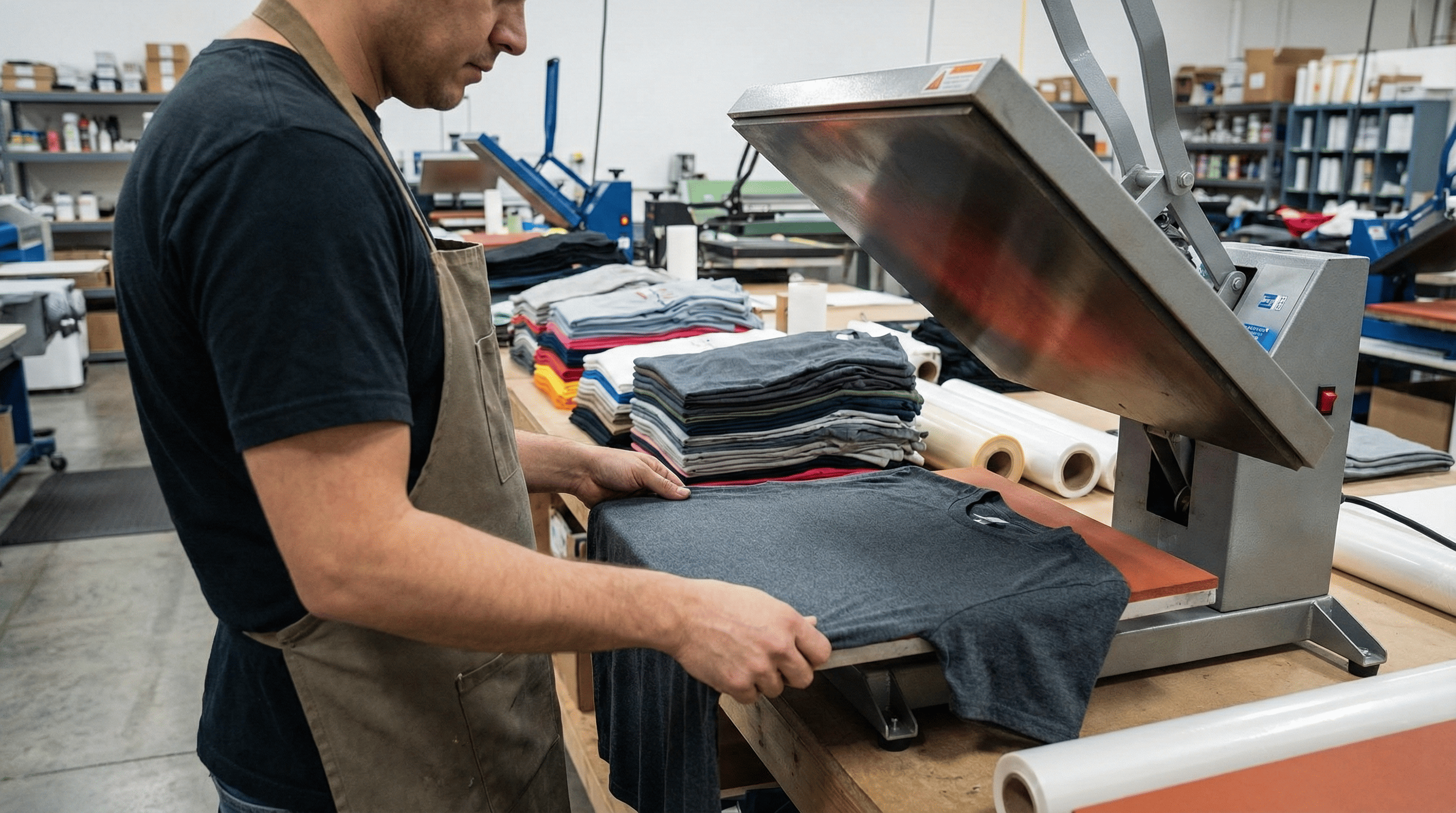 Problem: A mid-sized apparel fulfillment center in Ohio was using four manual 40x50cm presses. They were capped at 800 shirts per day with four operators, and the noise from auxiliary air compressors for their older pneumatic units was violating local noise regulations.