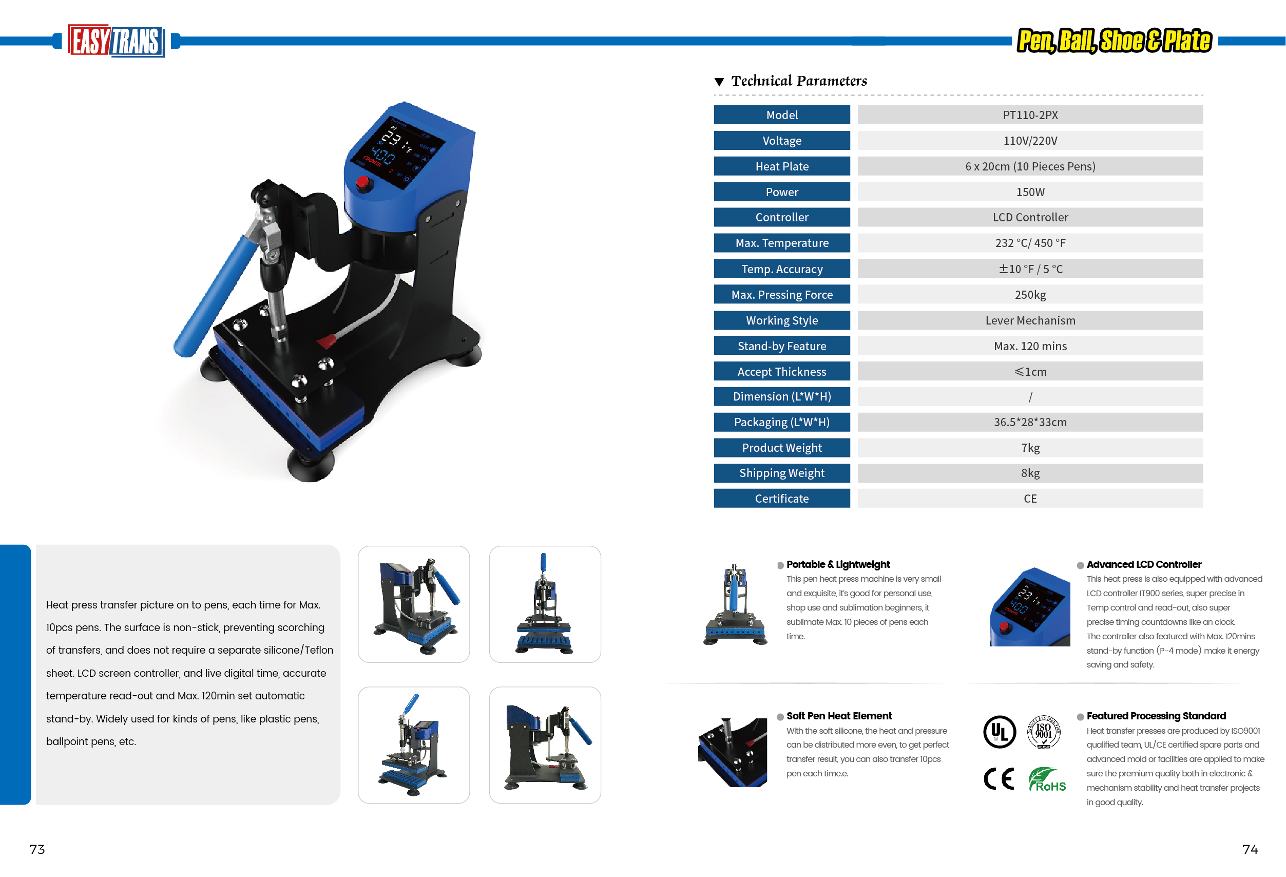 Heat Platen Size: 6 x 20cm (10 Pieces Pens)