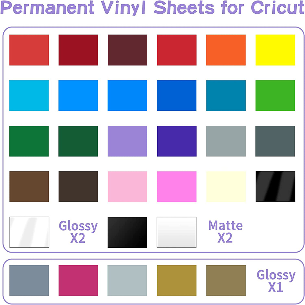 ● 【Size】The product contains 65 sheets of permanent adhesive vinyl, which covers 40 primary colors. The size of each sheet is 12" x 12" inches.