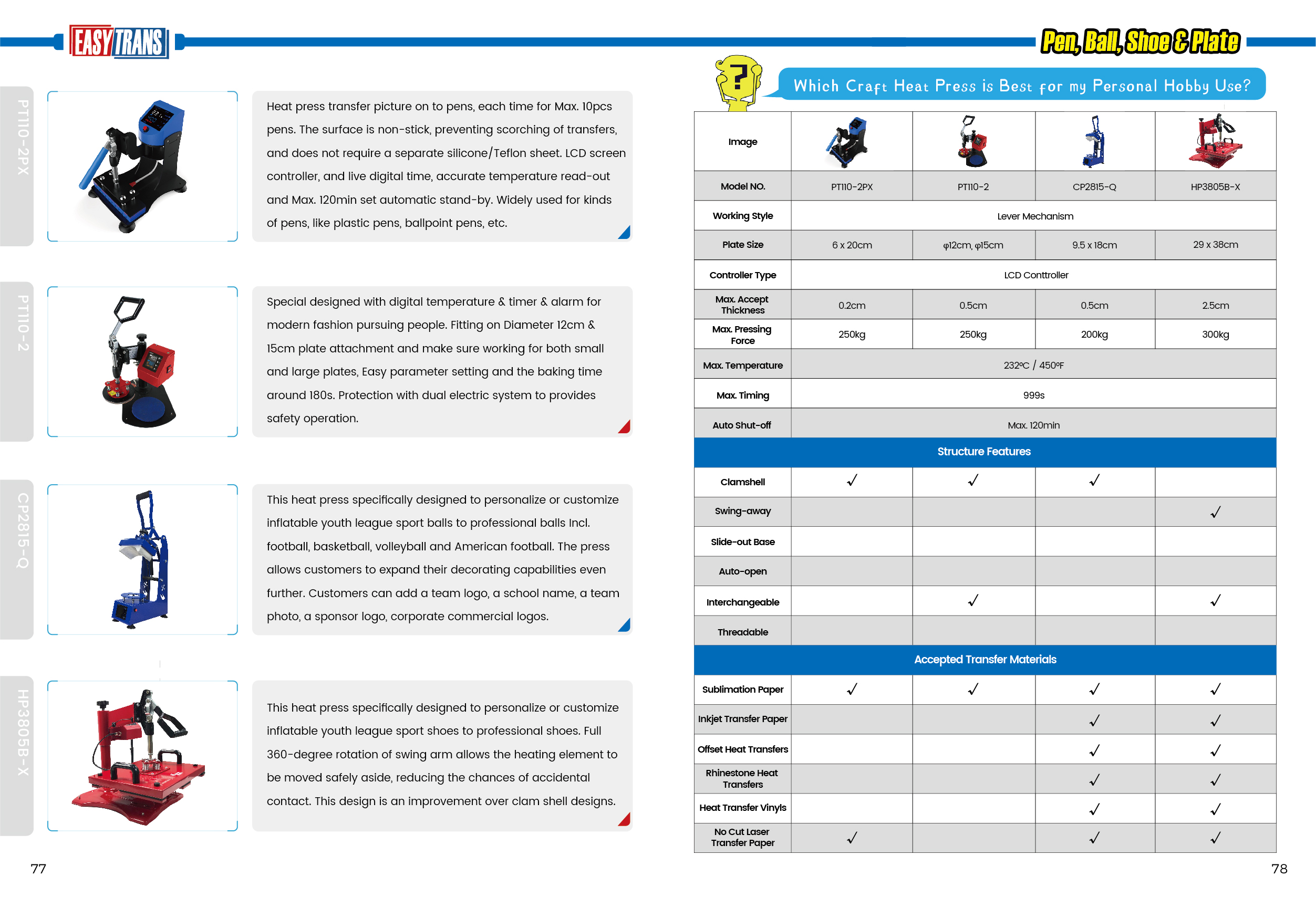 This heat press specifically designed to personalize or customize inflatable youth league sport shoes to professional shoes. Full 360-degree rotation of swing arm allows the heating element to be moved safely aside, reducing the chances of accidental contact.