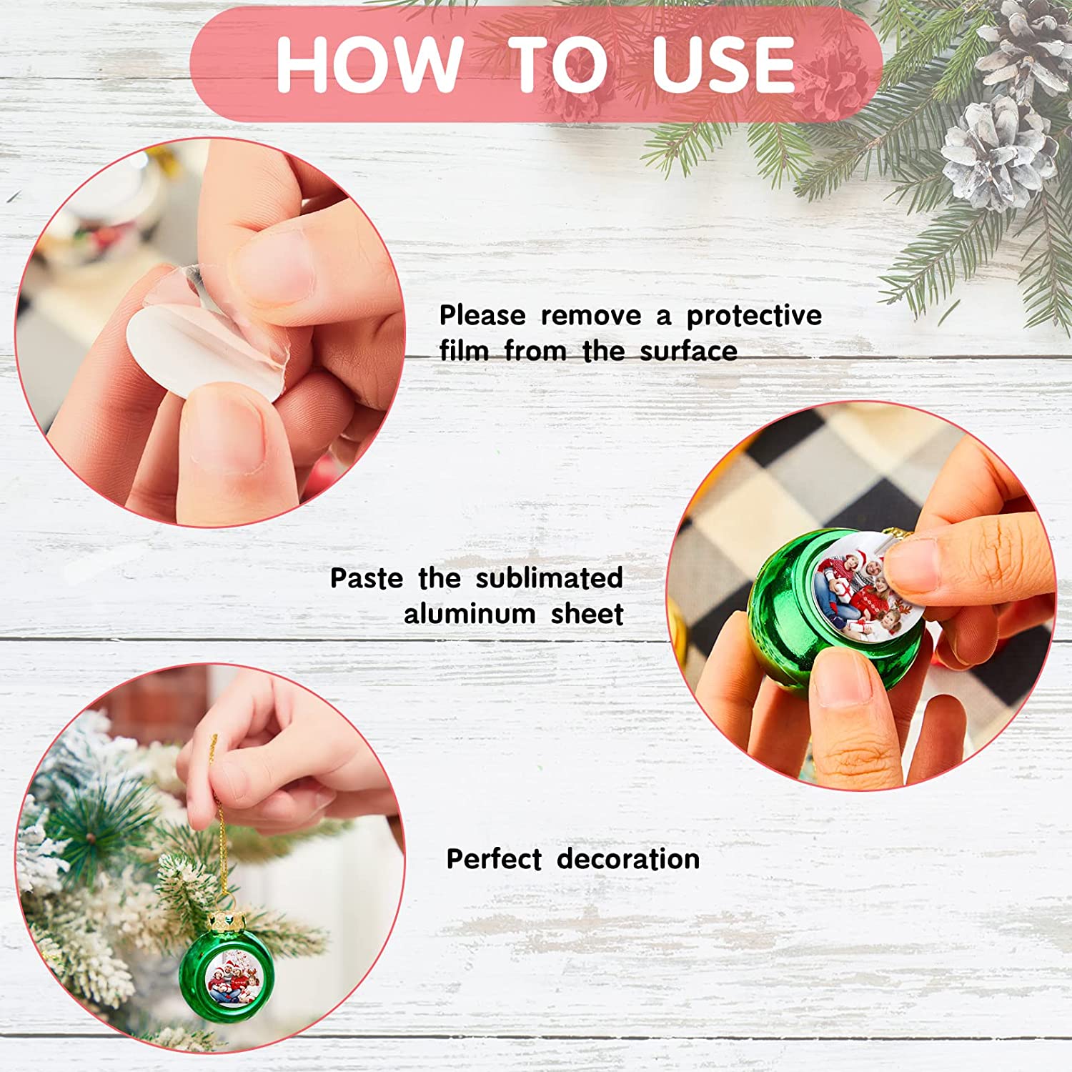 ● Идеалан избор за урадилац: Божићна орнамент балл је погодна за израду ДИИ пројеката, стављањем фотографија које вам се свиђају на одговарајућим алуминијумским плочима топлоте и откидајте бели заштитни филм са лопте и причврстите алуминијумску плочу на лопту, деликатно и слатко