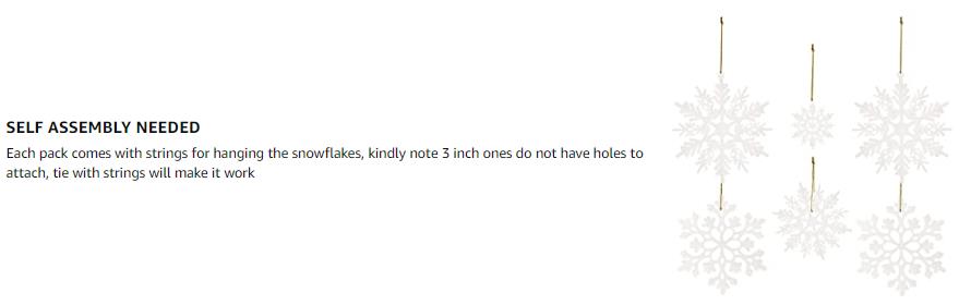 ● DESIGNED TO HANG: Big Christmas snowflake ornaments have hole at top for easy hanging except some that are only with the hollow design but they're also able to be hung easily with the string included