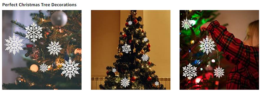 ● CHRISTMAS TREE SNOWFLAKES: Featuring sparkly glitters on the surface, these white snowflakes tree ornaments add much more sparkle to your Christmas tree decorations, various sizes give a nicer variety on the tree, just let it snow
