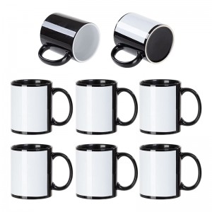 Cupannan cofaidh fo-làmhachaidh 11 unnsa bàn dubh le paiste geal cupannan dealbh ceirmeagach