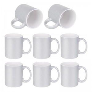 Cupannan sublimation 11 unnsa bàn Cupannan cofaidh airgid glitter cupannan dealbh ceirmeach geal mòr-chuid