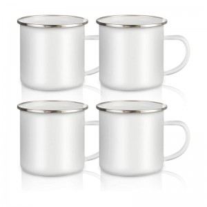 Mug Enamel 12 OZ Sublimation Blanks Geal Campachadh a-muigh Cofaidh Siubhal Meatailt Tana Mug le Sil ...