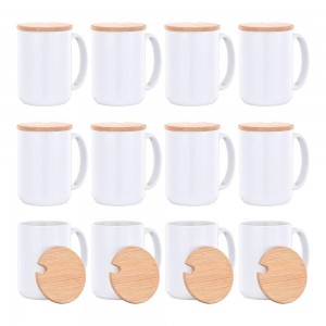 Cupannan Sublimation 15 oz bàn le mullach bambù Cupannan cofaidh geal Sublimation