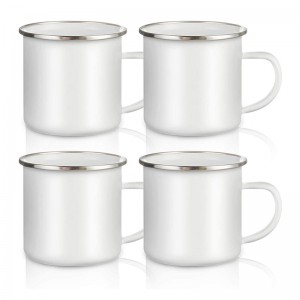 Mug Enamel 17 OZ Sublimation Blanks Geal Campachaidh Cofaidh Siubhail Meatailt Mug le Iomall Airgid