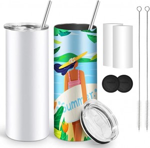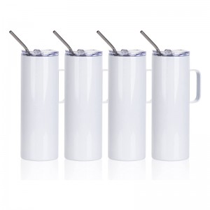 હેન્ડલ અને સ્ટ્રો સાથે 20 OZ સબલાઈમેશન બ્લેન્ક સ્કિની ટમ્બલર વ્હાઇટ મગ