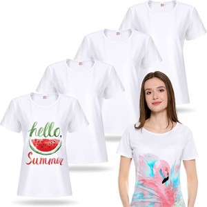 મહિલા સબલાઈમેશન બ્લેન્ક ટી-શર્ટ બેઝિક વ્હાઇટ પોલિએસ્ટર શર્ટ સબલાઈમેશન શોર્ટ સ્લીવ ટી-શર્ટ