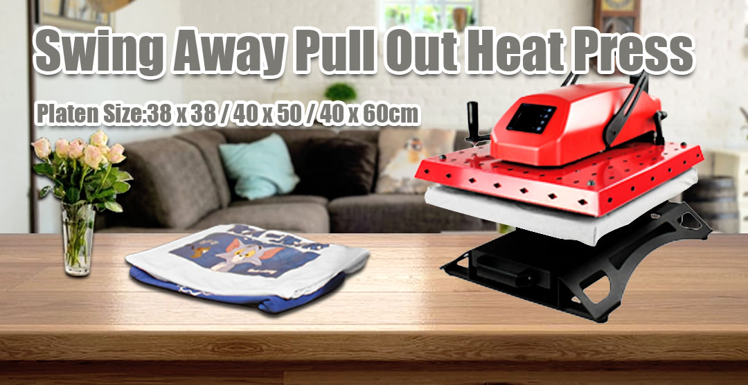 Þetta er EasyTrans Advanced Level hitapressa með sveifluarminum og sveifla bara hitaplötunni í burtu og skilja eftir nægilegt pláss til að hlaða verkin. Að auki er það stjórnað af burðarrúllukerfi og getur búið til Max. 320 kg, vísar til þess að auðvelt sé að nota fyrir leysirflutningspappír sem er ekki skorinn.