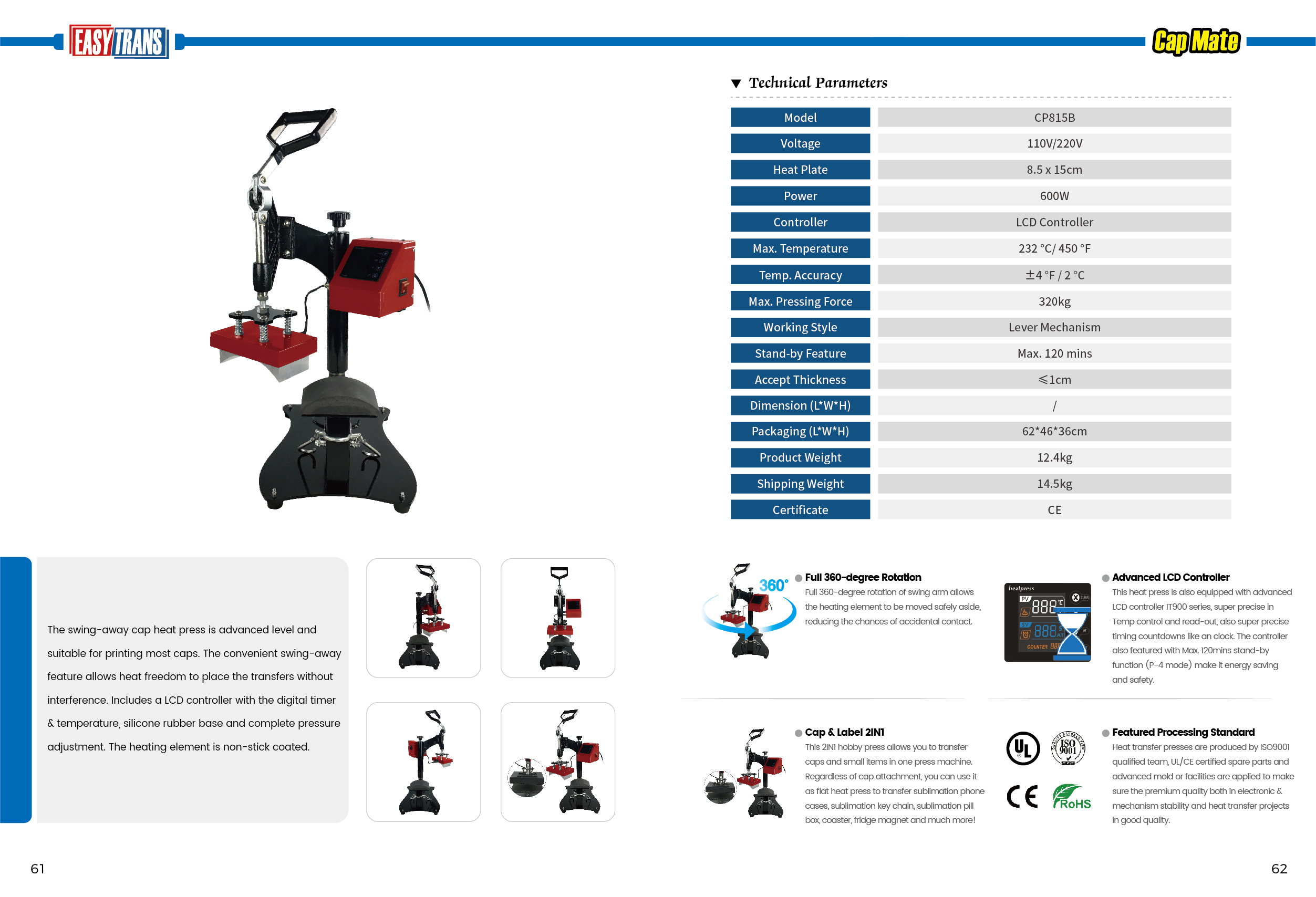 Šī karstuma prese ir aprīkota arī ar modernu LCD kontrolieri IT900 sēriju, īpaši precīzu temperatūras kontroli un nolasīšanu, kā arī īpaši precīzu laika atpakaļskaitīšanu, piemēram, pulksteni. Kontrolierim bija arī Max. 120 minūšu gaidstāves funkcija (P-4 režīms) nodrošina enerģijas taupīšanu un drošību.