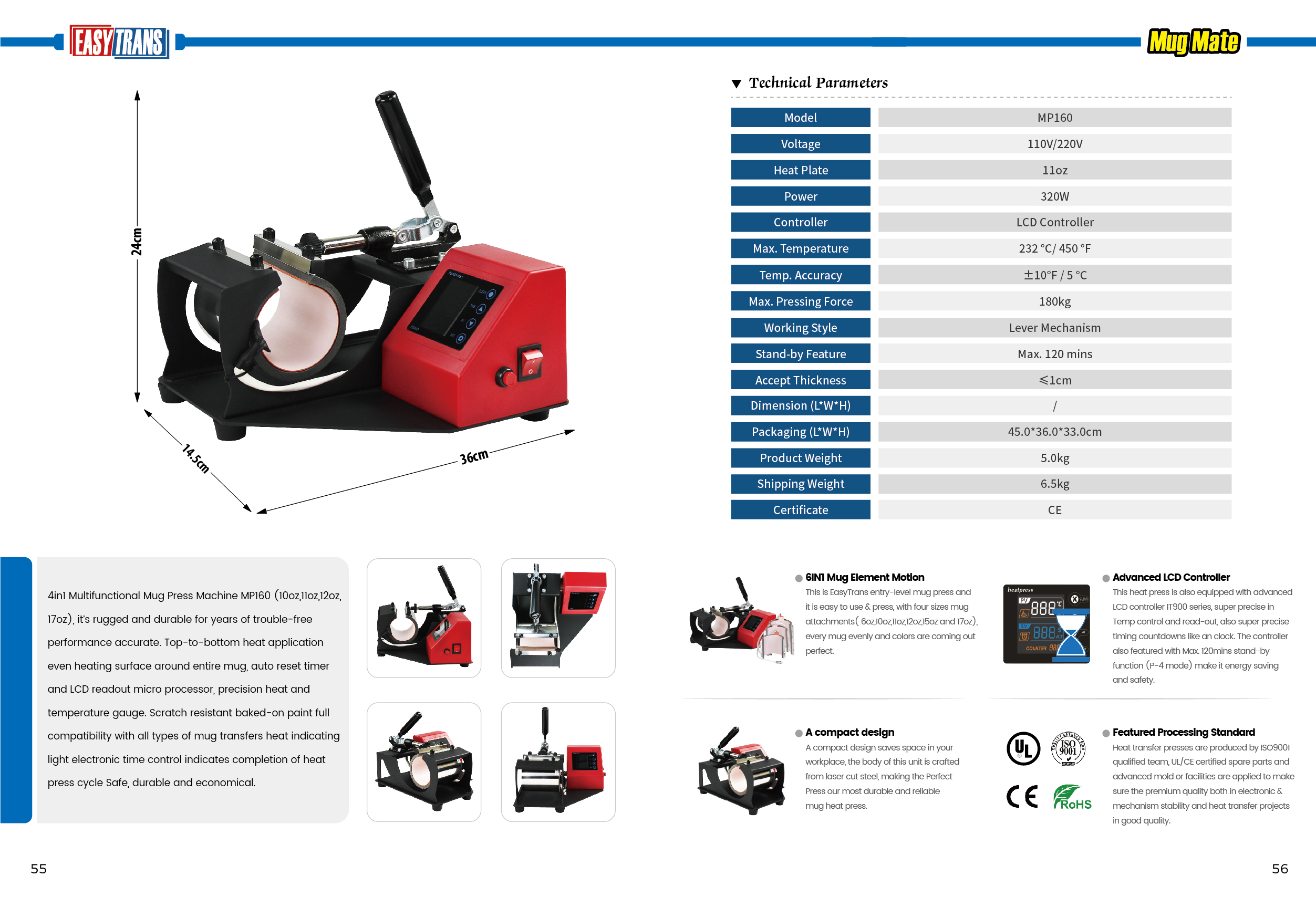 Ин пресси кружка дар сатҳи ибтидоии EasyTrans аст ва истифода ва пахш кардан осон аст, бо замимаҳои чор андозаи кружка (6oz,10oz,11oz,12oz,15oz ва 17oz), ҳар як кружка яксон ва рангҳо комил мебароянд.
